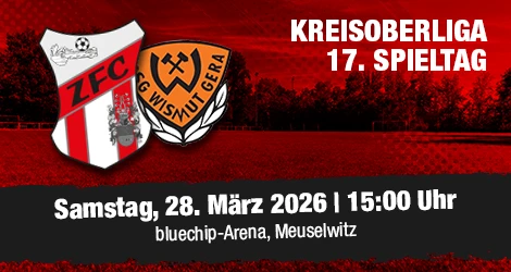 2. Männer | Punktspiel SPÄTER TREFFER LÄSST ZIPSE II IN ROSITZ JUBELN (23.03.26 07:30 Uhr) Der verlustpunktfreie Spitzenreiter der Kreisoberliga Ostthüringen, unser ZFC Meuselwitz II, musste beim benachbarten SV Rositz antreten. Im LSS-Sportpark entwickelte sich die erwartete schwierige Partie Weiterlesen... |