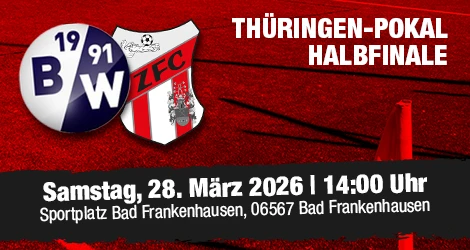(24.03.26 09:37 Uhr) Am Samstag, dem 28.03.2026, kommt es im Rahmen des Thüringer Landespokals zur Halbfinalpartie zwischen dem Landesligisten aus Bad Frankenhausen und unserem ZFC Meuselwitz.
